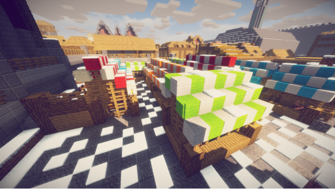 城中的商铺仅仅用简单的羊毛进行了装饰,风格简约却不简单,五彩的房顶让城市变得更加具有生活气息。