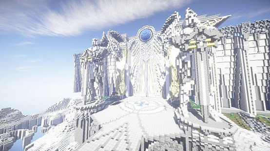 因为天堂这个素材多少还是跟神性有一定关系的,所以在配色的选择上会选择象征纯洁的白。所以这个天堂的建筑大多是以白色为主的,细节花纹十分精美。