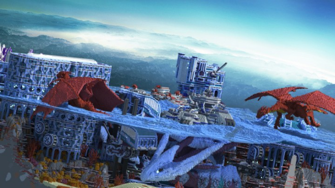 刚才的酒店好歹还在人类的范畴内,这个酒店就有点夸张了,竟然是在一条蓝色巨龙的背上。