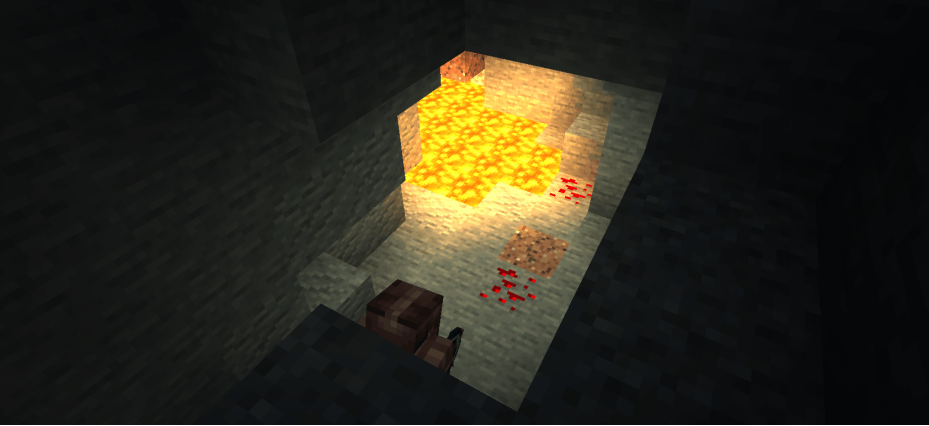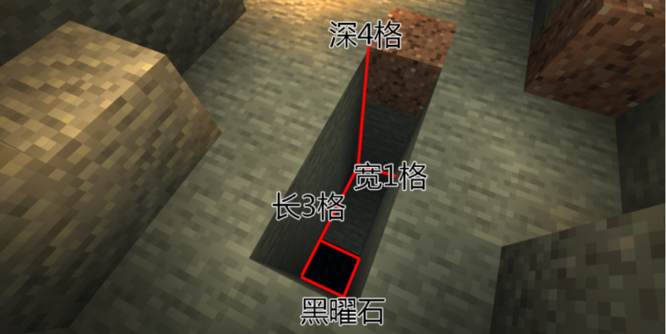 利用这个小特性来做个矿洞中的地雷~首先找到有红石矿的地层,在合适的地方按照下图挖出坑洞并摆上黑曜石(这个结构是今天3种地雷的基础哦)